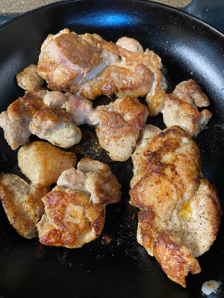 - Make sure to only cook a couple thighs at a time, don’t overcrowd the pan. Otherwise your chicken can’t breathe and you’ll end up with soggy chicken. Ain’t no body got time for that! We are going for crispy, golden edges, and juicy chicken 🙂